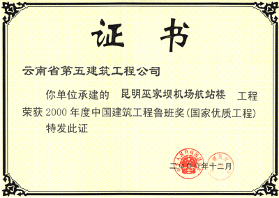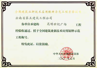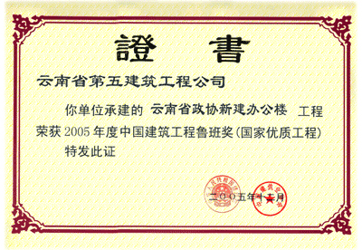 昆明市第一人民醫(yī)院外科住院大樓—2005年度“AAA級安全文明標準化誠信工地”